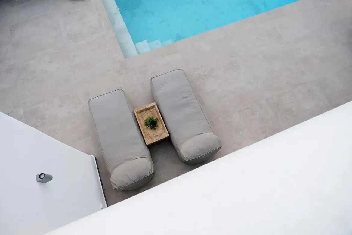 Villa Eclipse is perfectly located in Agios Ioannis, Mykonos, and offers an excellent view of Delos Island and the sunset over the bay. The 350 sq. m. property may accommodate up to 12 guests in its 6 double bedrooms and features a large living room with a bright dining area, an Infinity Pool, a private parking space, and a private picturesque chapel on site. The unique lounge area around the pool is well equipped with modern sunbeds and a stylish daybed and is ideal for both relaxation and small events.