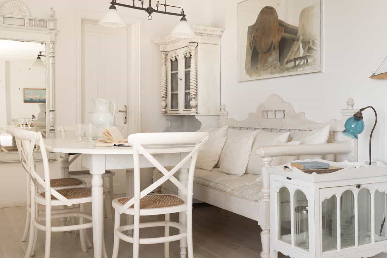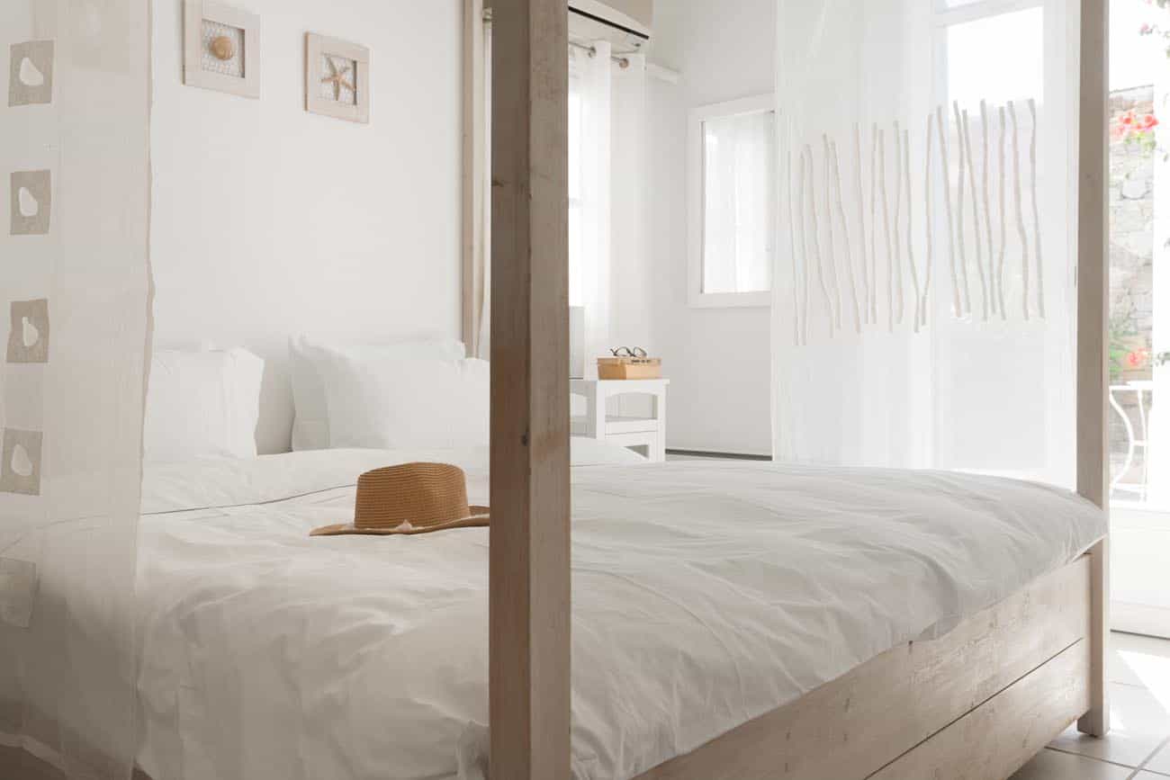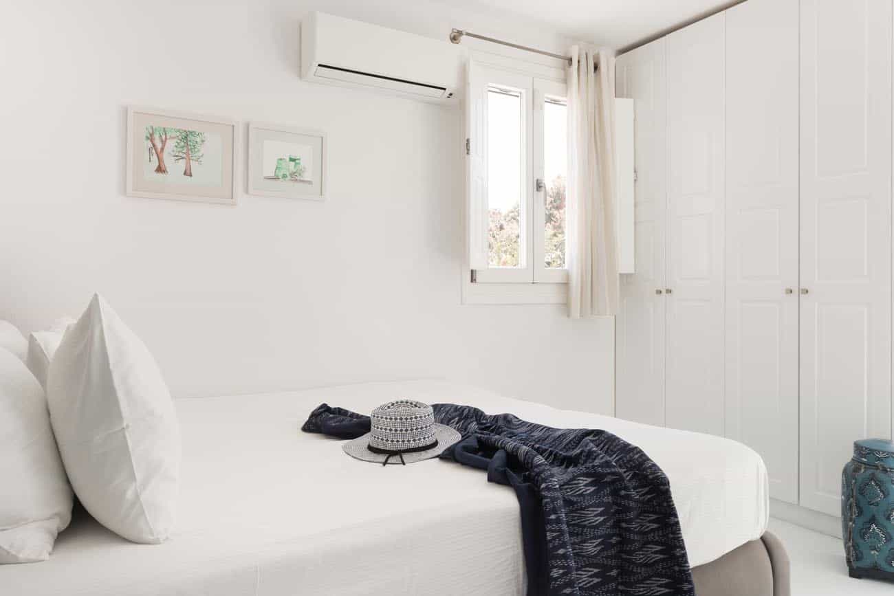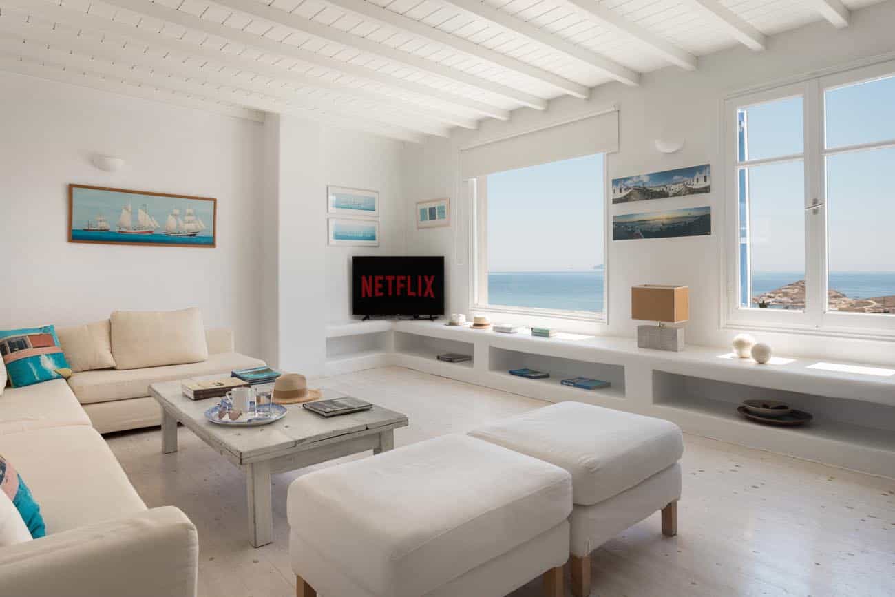 Ample and luminous, the villa offers an utterly soothing ambience in all interior spaces where its bright white and soft beige tones on the walls and all furnishings create an aura of freedom and purity. Decorated with a contemporary, minimal mood along with smart antique details, this is a property that will guide you through the authentic Mykonian living.