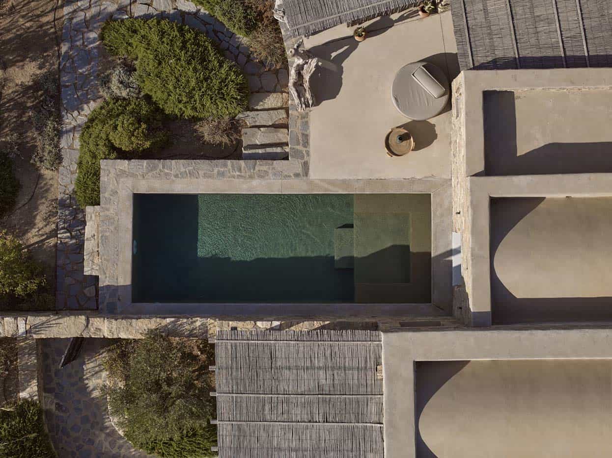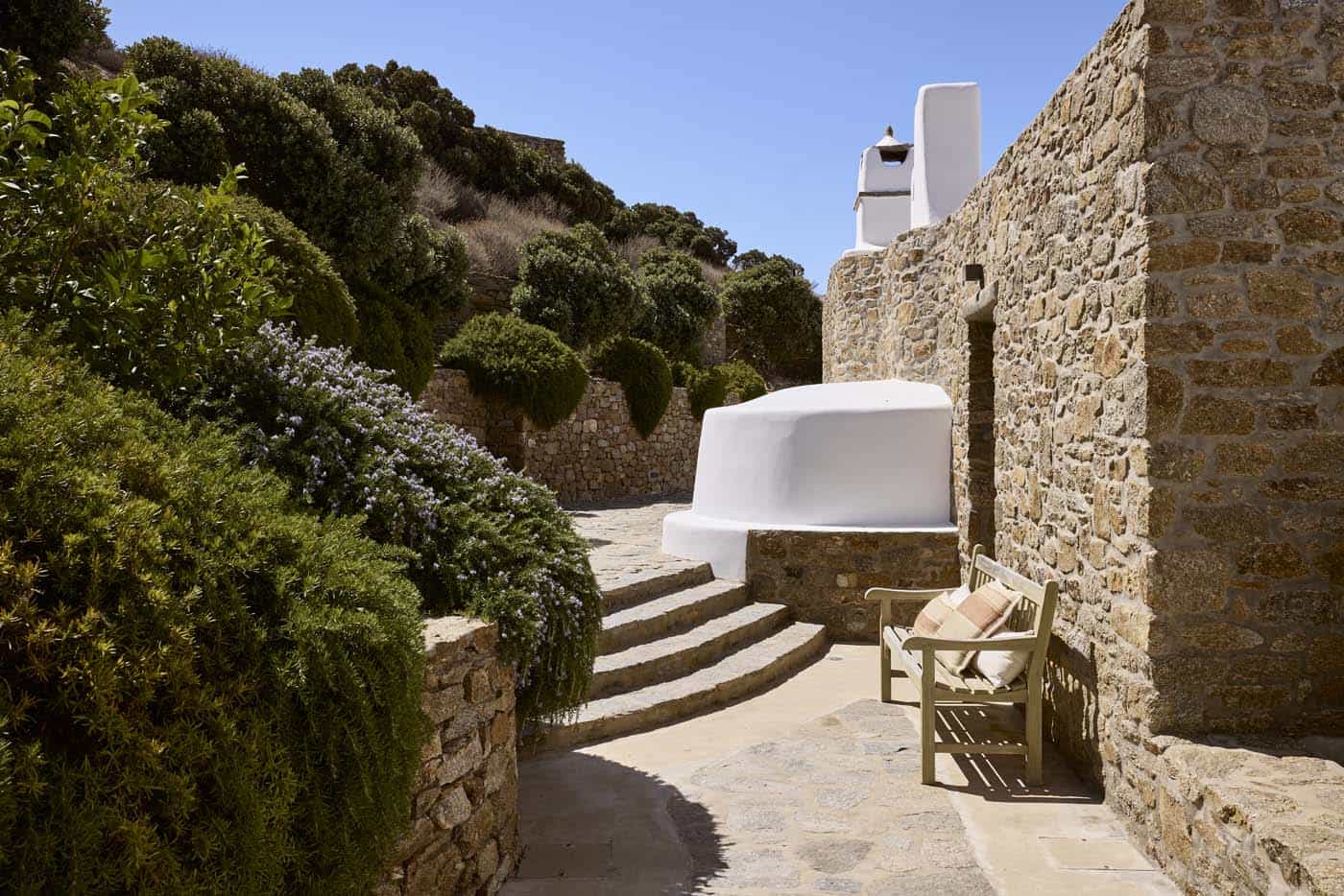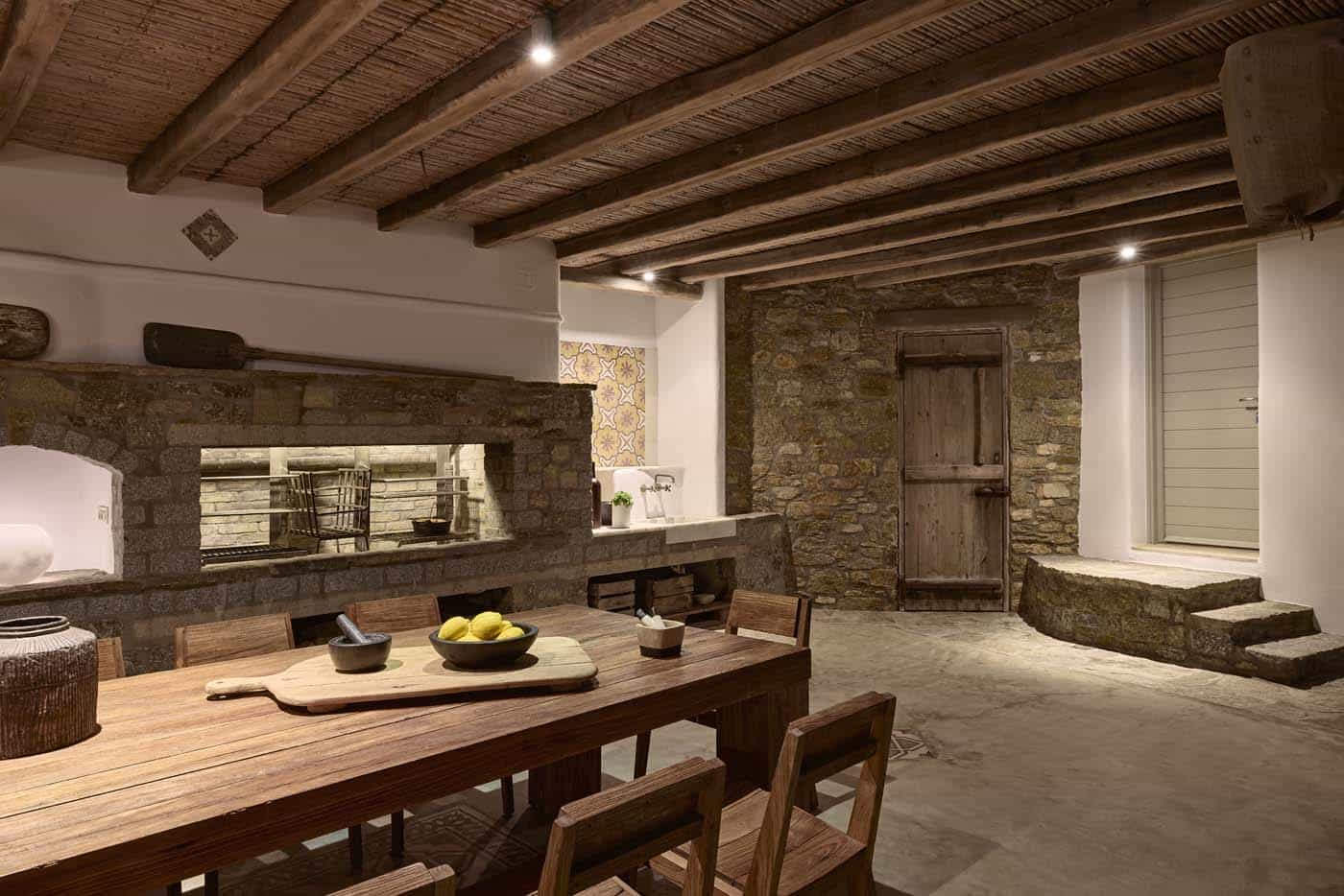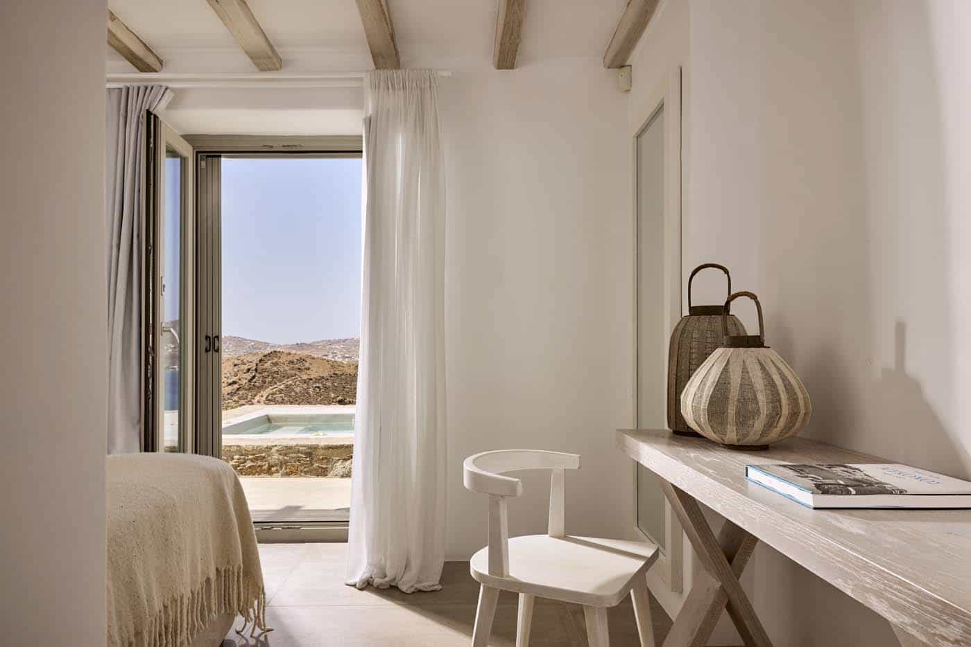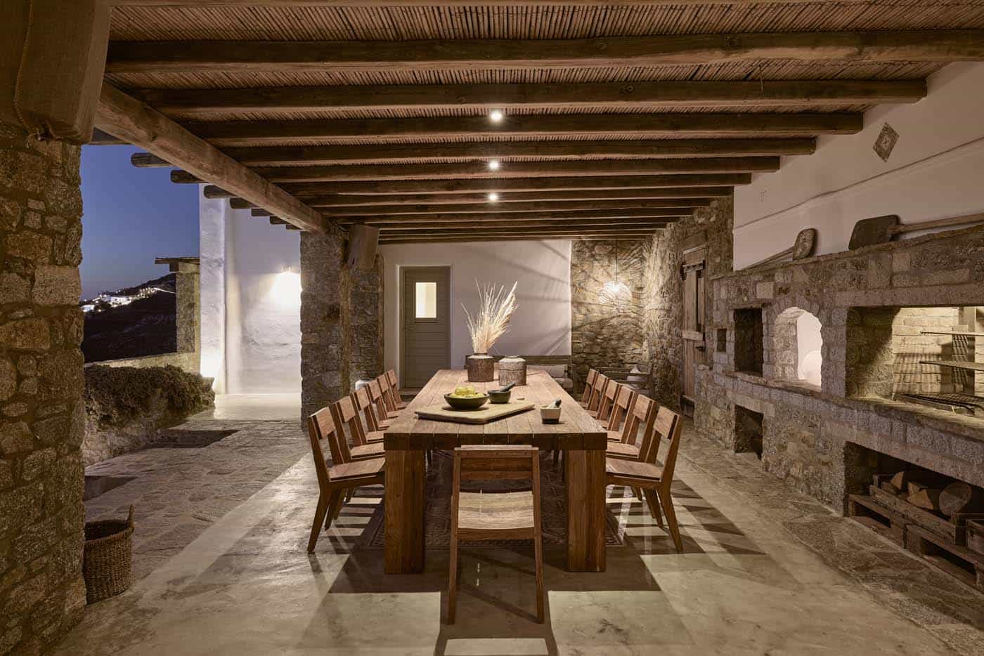 The guests have access to the 2 pools in the property (one of which may be heated upon request), the outdoor Jacuzzi, the beautiful gardens that surround the villa and the gym, while the Hammam facilities are available upon request. The outdoor dining area is situated right above the pool and offers a truly astounding view of the Aegean sky and sea. The suites feature rustic furnishings and spacious balconies or verandas.