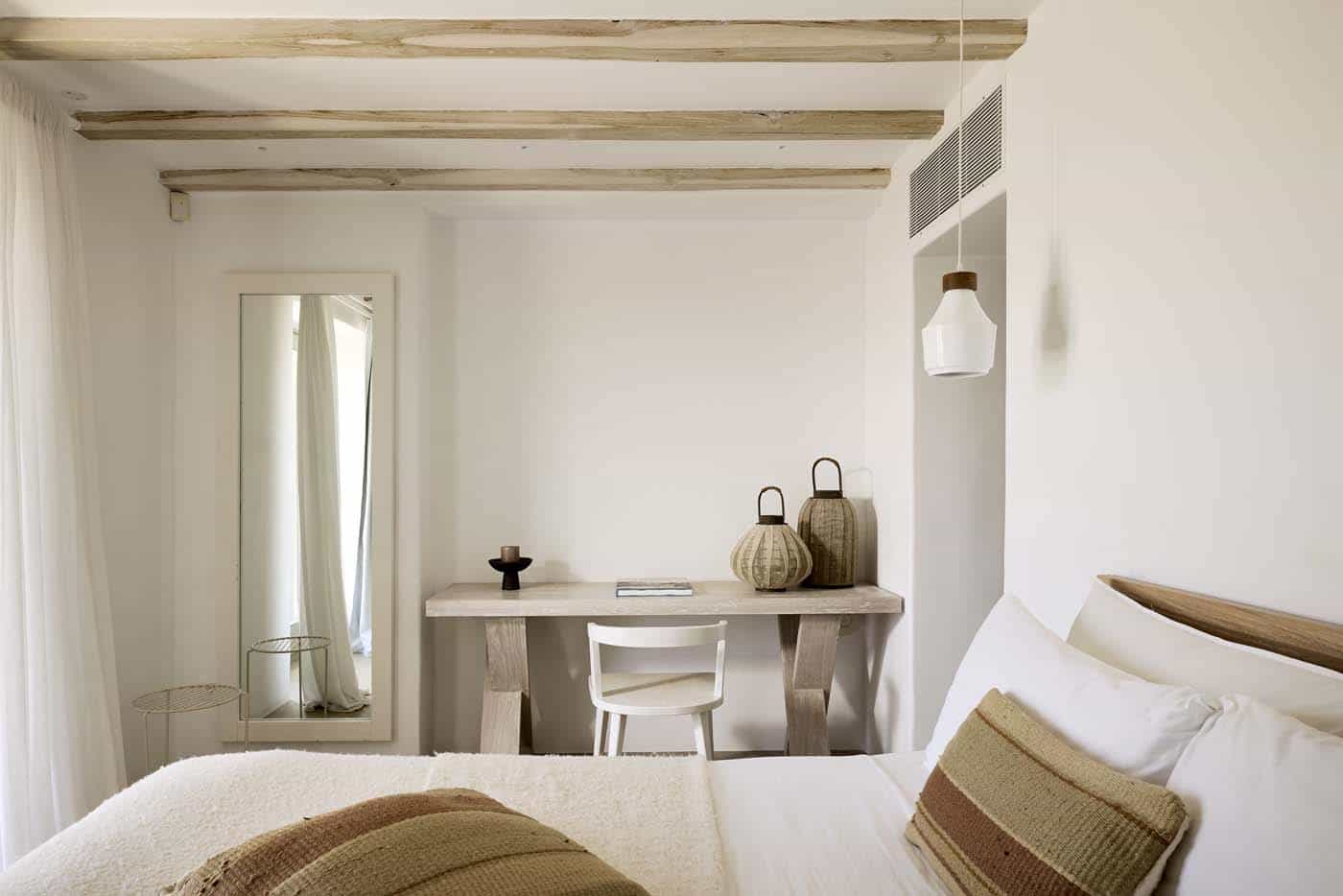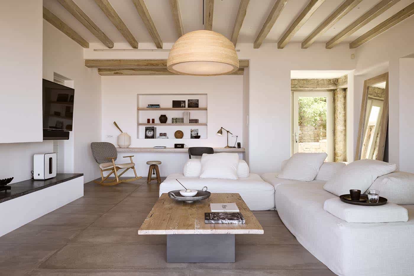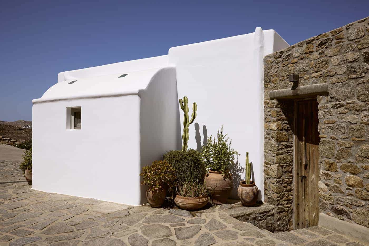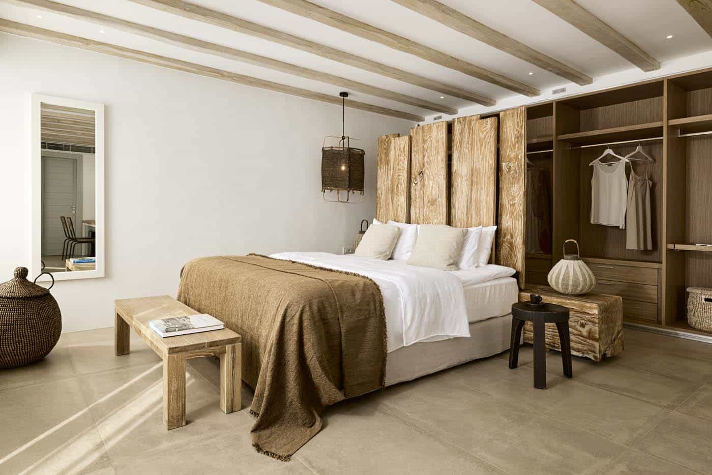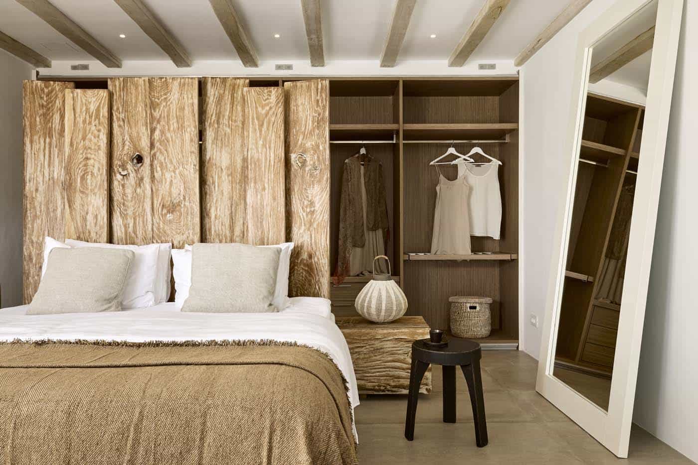 The guests have access to the 2 pools in the property (one of which may be heated upon request), the outdoor Jacuzzi, the beautiful gardens that surround the villa and the gym, while the Hammam facilities are available upon request. The outdoor dining area is situated right above the pool and offers a truly astounding view of the Aegean sky and sea. The suites feature rustic furnishings and spacious balconies or verandas.