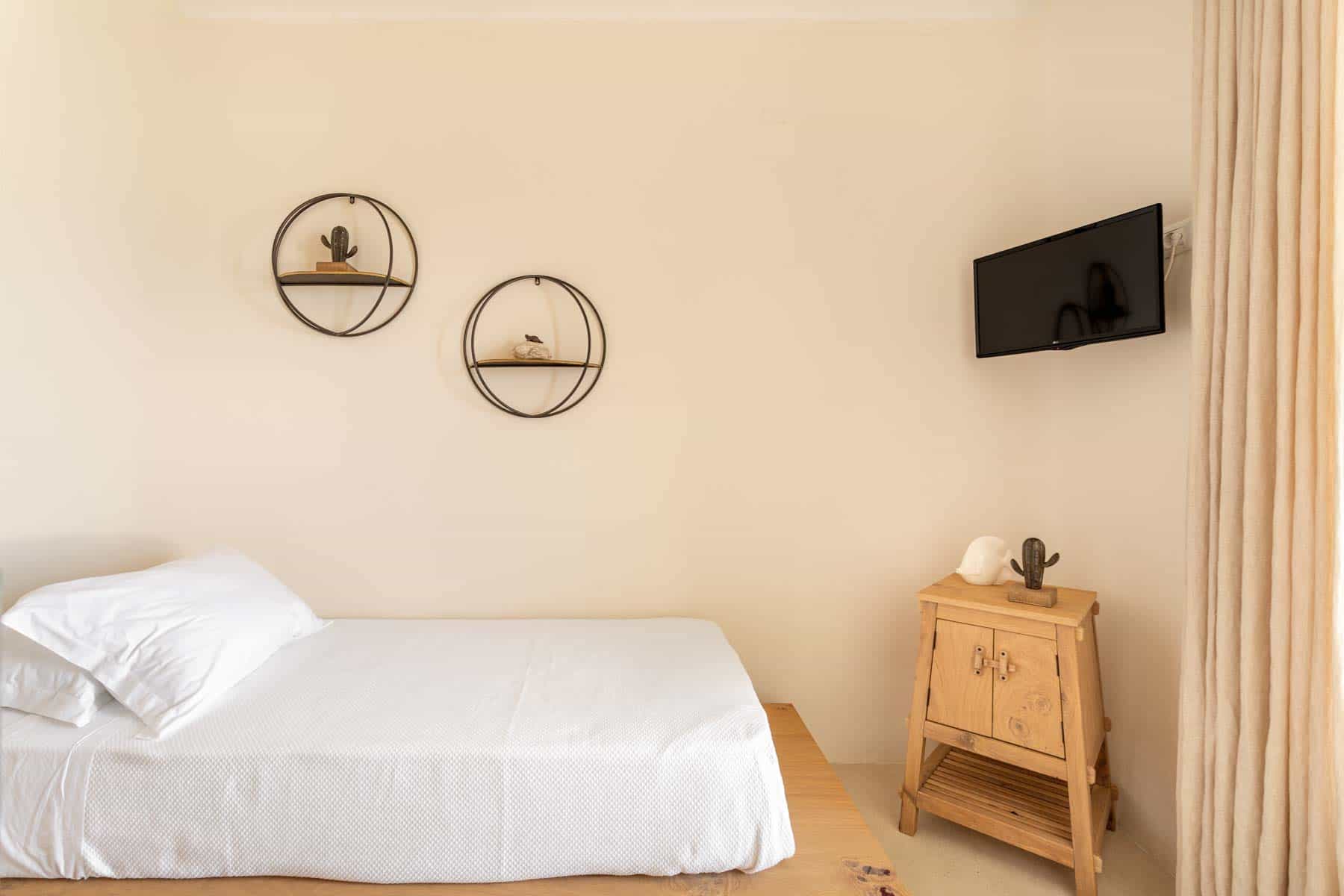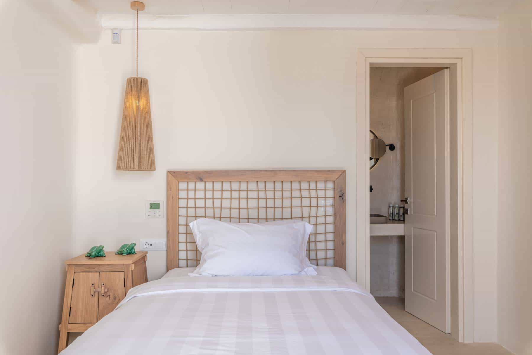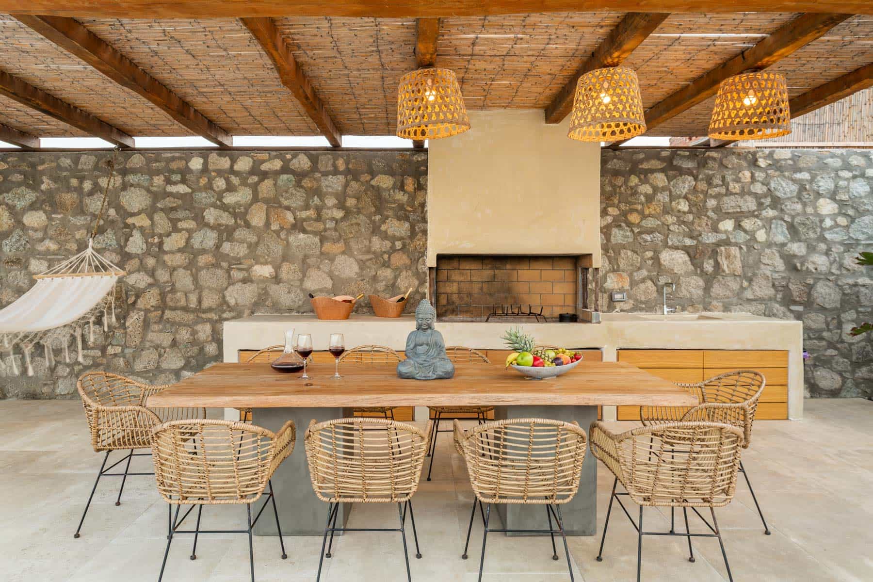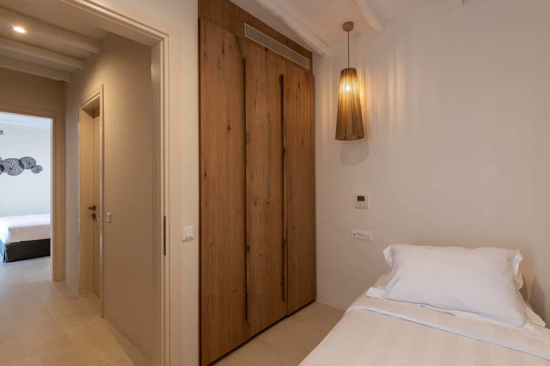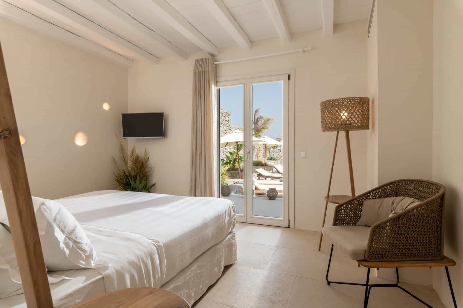 Bathed in the world famous Cycladic light and cooled by the Aegean breeze, it is one of the most luxurious  Villas in Mykonos, with two adjacent guest apartments, built on a plot of  1,000 sq.m., and offers the ideal holiday destination for large families or groups of friends (up to 16 persons). The main villas combine traditional and modern Cycladic design, luxury and absolute privacy. Incredible attention is devoted to every single detail, with an outdoorsy approach that does not compromise the cozy indoor living, elegant decoration with wooden furniture, Home Decor, chestnut ceilings.