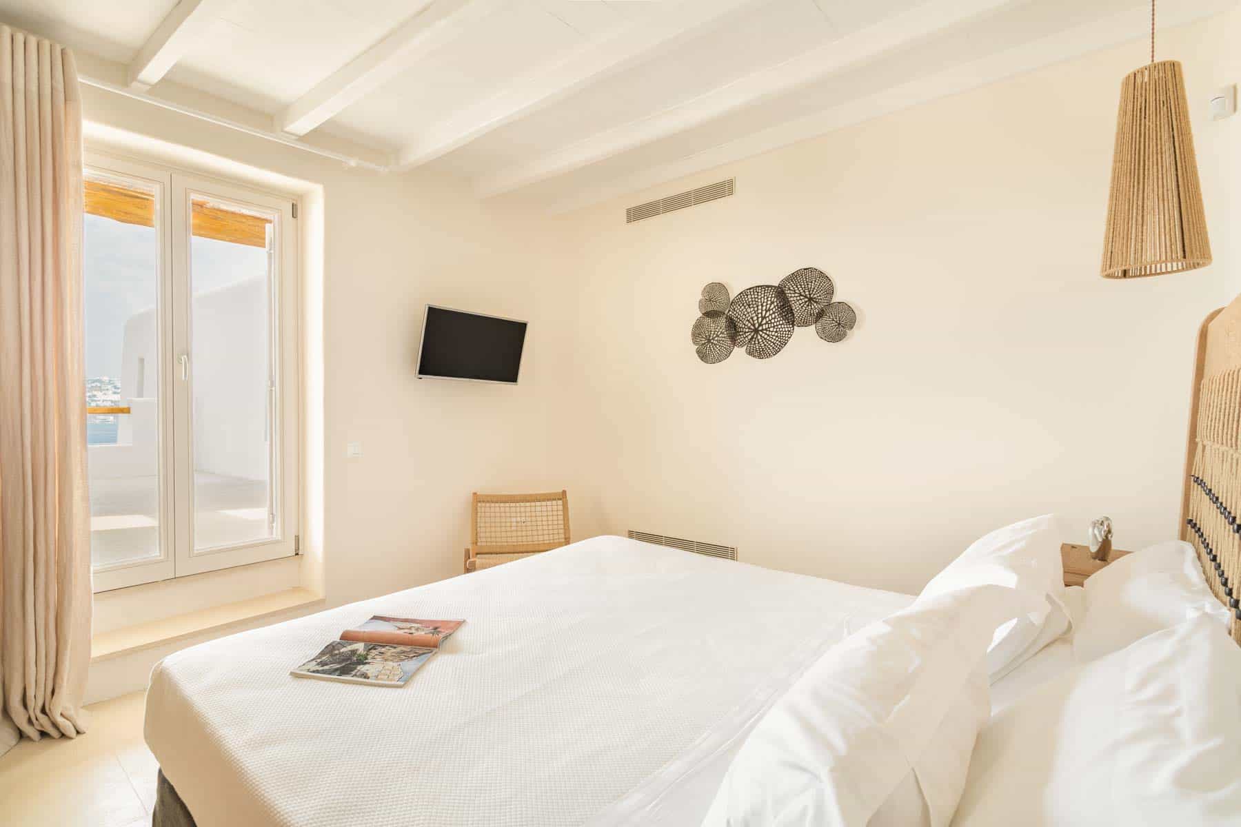 It is just a 15-minute drive from Mykonos town and offers its guests the ultimate Mediterranean experience, with a superb view of the Aegean Sea, Mykonos Town, the Old and New harbor. The nearest small beach is just 500m away and a Helipad 200m away.