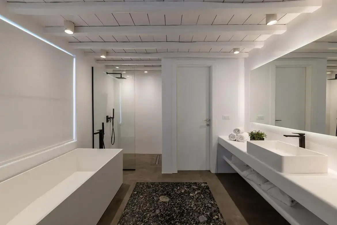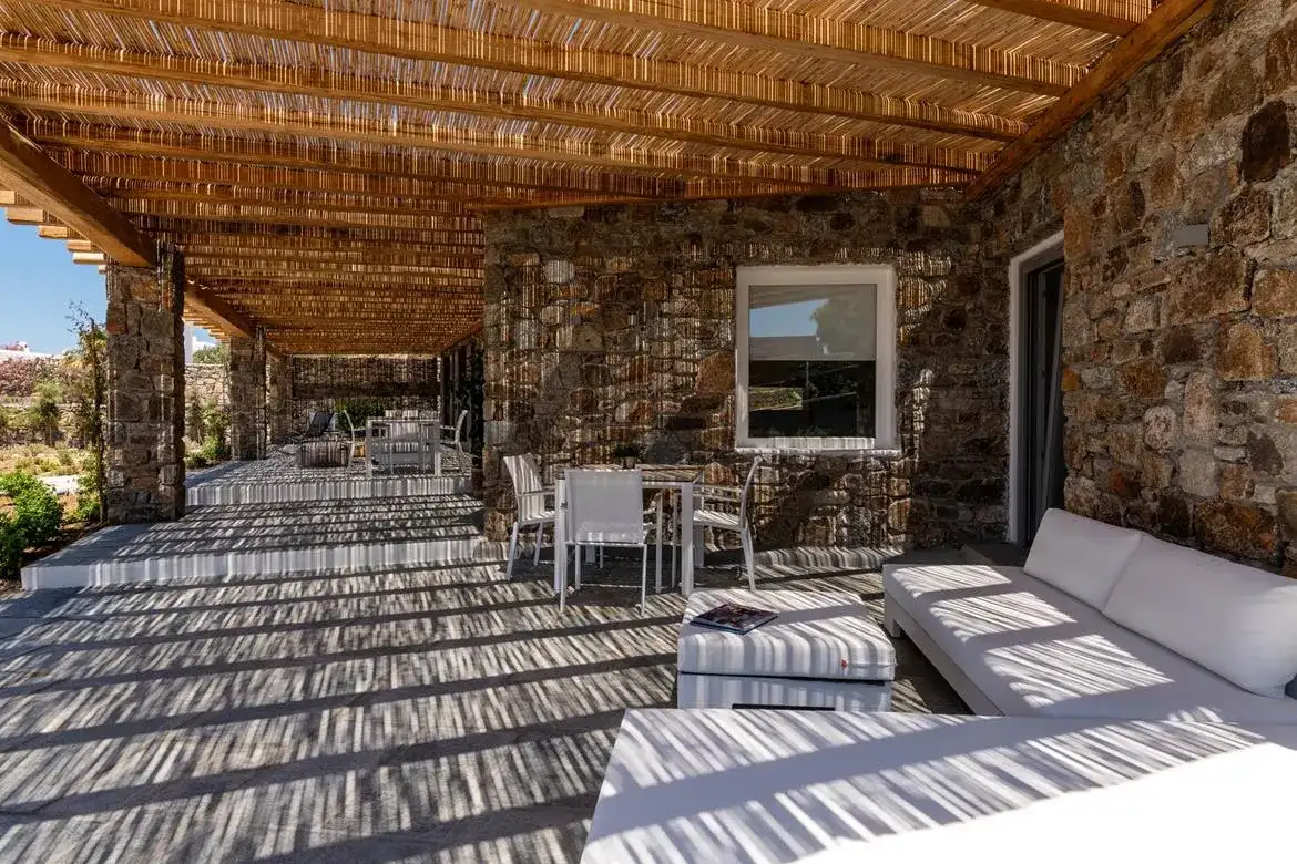WHITE VILLA is located in Agios Lazaros, is totally new in construction and has been very carefully made to sleep more than 12 people. It offers breathtaking views of the surrounding peninsulas, islands, Delos and the sunset. Its uniqueness is the well planned outdoor areas with wonderful relaxing sitting facilities, in addition to the carefully made guest rooms.